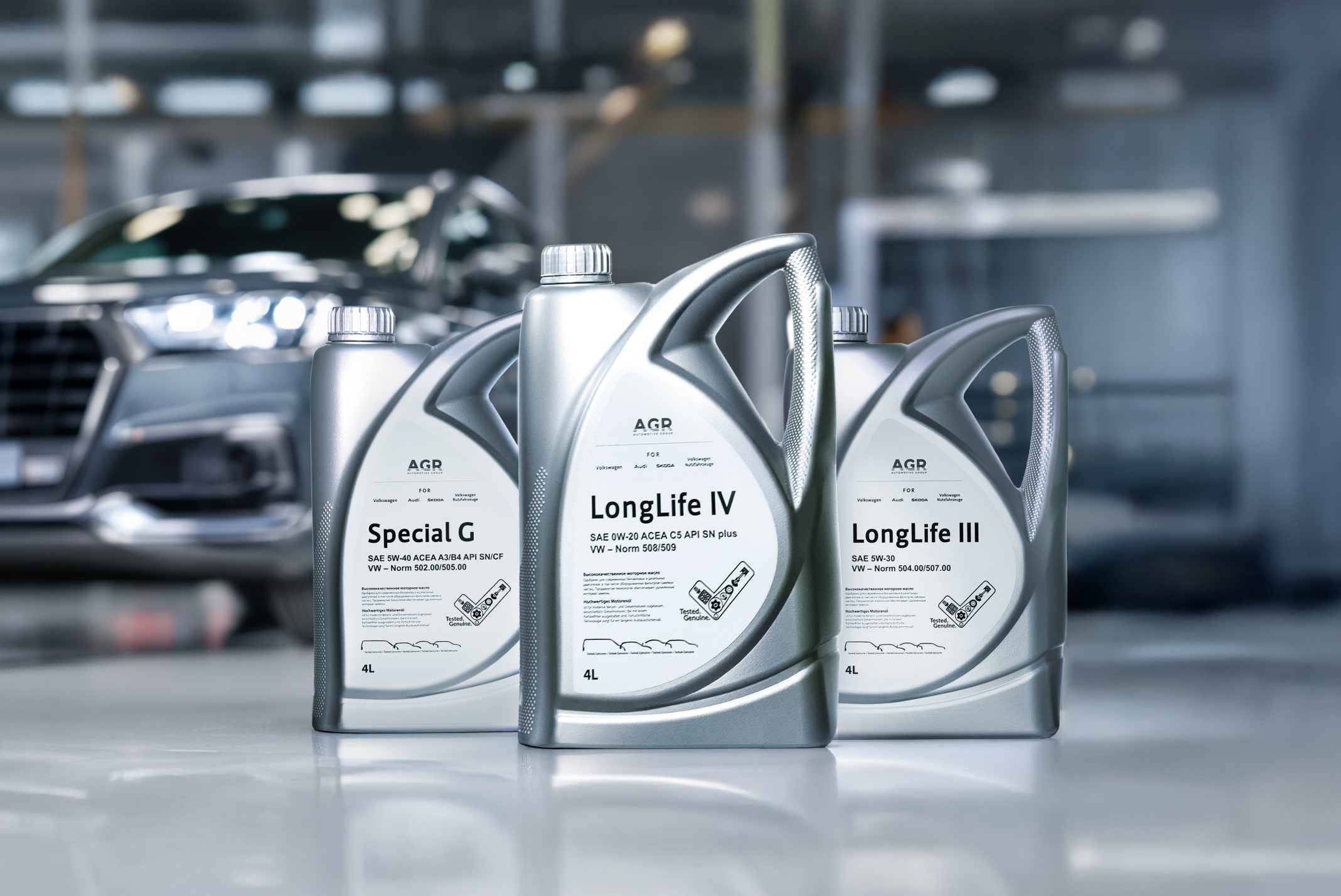 Смазочные материалы предназначены для гарантийного и постгарантийного обслуживания автомобилей марок концерна Volkswagen (VW, Audi и Skoda). Высокотехнологичные моторные масла, выпускаемые под брендом AGR, разработаны специально для обеспечения безупречной работы двигателей современных автомобилей в полном соответствии с требованиями Volkswagen и Европейской ассоциации автопроизводителей (АСЕА). Продуктовая линейка покрывает все требуемые спецификации и включает высокотехнологичные синтетические масла на основе природного газа и с присадками от ведущих иностранных производителей.